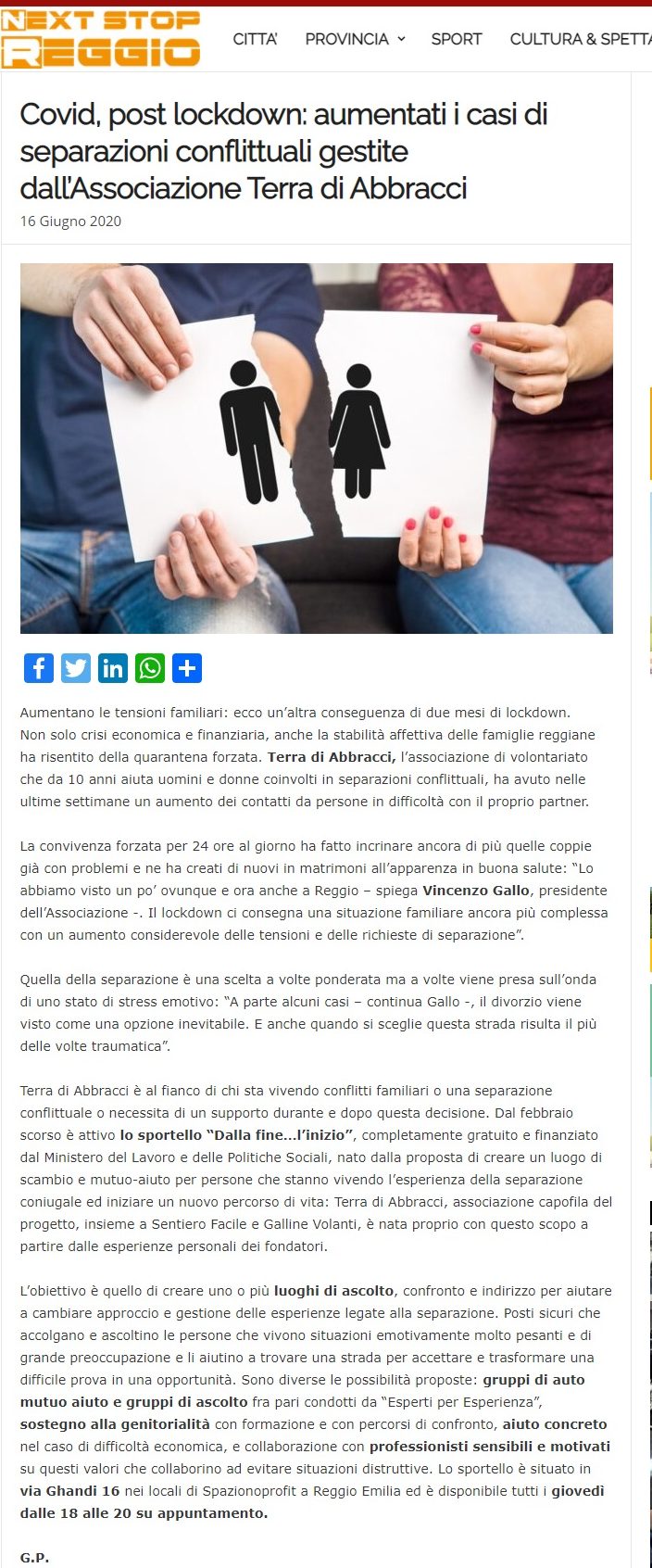 Next Stop Reggio: boom di separazioni dopo il lockdown 16_06_2020